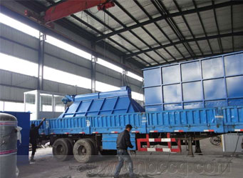 浙江寧波北倫電廠粉煤灰處理用PPC96-8布袋除塵器運(yùn)抵現(xiàn)場(chǎng),正在卸車。