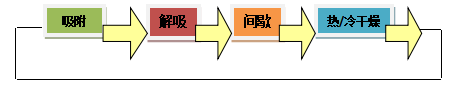 脫附過(guò)程結(jié)束后,吸附器內(nèi)的溫度很高,通過(guò)間歇過(guò)程可使吸附器放空降溫,以及通過(guò)調(diào)節(jié)間歇時(shí)間來(lái)調(diào)整總的吸附時(shí)間。
