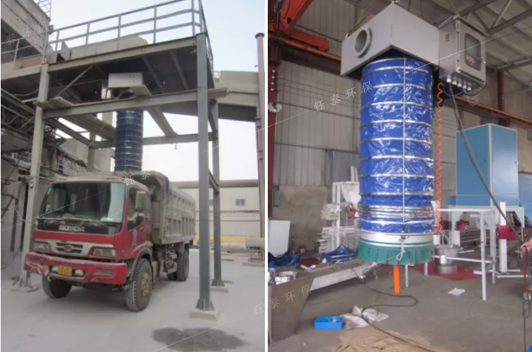 一鍵開啟自動裝車,粉塵無外溢是智能化無塵裝車伸縮溜筒的亮點,為了使無塵裝車伸縮溜筒具有除塵功能,關(guān)鍵是在溜筒出口處布置吸塵點。在除塵器離心風(fēng)機的驅(qū)動下,在溜筒出口處的吸塵點