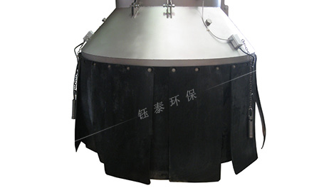 溜筒出口處的吸塵罩為多層結(jié)構(gòu),內(nèi)層為由皮帶膠組成的耐磨性能好、有一定相對硬度且具柔性的圍裙。皮帶膠圍裙主要用于緩解高速物料帶來的沖擊,緩沖高速氣流帶來的粉塵急速擴散。吸塵罩的皮帶膠圍裙也起支撐作用,可以避免由于負(fù)壓作用,外層帆布裙被吸扁,碰到料位檢測裝置導(dǎo)致誤報信號或者在溜筒出料口干擾物料流動。吸塵罩外層為雙重帆布圍裙,帆布裙的內(nèi)層長度需比皮帶膠圍裙大,需完全罩住皮帶膠圍裙。帆布裙外層比內(nèi)層略大,需覆蓋住溜筒出口處的物料。雙重結(jié)構(gòu)主要用于控制粉塵外揚及外部風(fēng)力作用將粉塵揚起擴散。整個吸塵罩在物料面和溜筒出口間構(gòu)成一個相對密閉的空間,防止粉塵外溢。